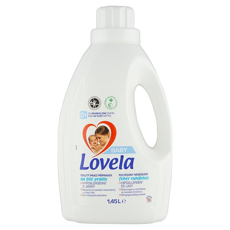 Lovela BABY tekutý prací přípravek na bílé prádlo. VAROVÁNÍ Způsobuje vážné podráždění očí. Uchovávejte mimo dosah dětí. Je-li nutná lékařská pomoc, mějte po ruce obal nebo štítek výrobku. Po manipulaci důkladně omyjte ruce. PŘI ZASAŽENÍ OČÍ: Několik minut opatrně vyplachujte vodou. Vyjměte kontaktní čočky, jsou-li nasazeny a pokud je lze vyjmout snadno. Pokračujte ve vyplachování. Přetrvává-li podráždění očí: Vyhledejte lékařskou pomoc/ošetření. PŘI POŽITÍ: Necítíte-li se dobře, volejte TOXIKOLOGICKÉ INFORMAČNÍ STŘEDISKO/lékaře.