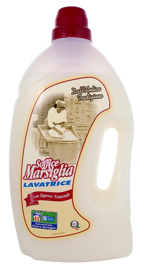 Prací gel Soffice Lavatrice Marsiglia s obsahem marseillského mýdla. Tento tekutý prací prostředek je vhodný jak na praní barevného, tak i bílého prádla. Je tak efektivní, že není potřeba k pracímu prostředku přidávat odstraňovač skvrn, a to ani když perete při nižších teplotách. Skvrny odstraňuje již při 30-60°C, a to i bez předpírky. Díky marseillskému mýdlu má prací gel specifickou vůni a v pračce prádlo zvláčňuje. Proto pak není nutné přidávat do praní aviváž.