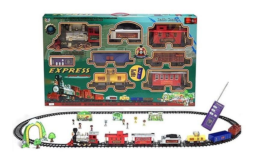 Kolejka na radio, światło, dźwięk, 6 wagonów; 90x54x13cm, číst celé