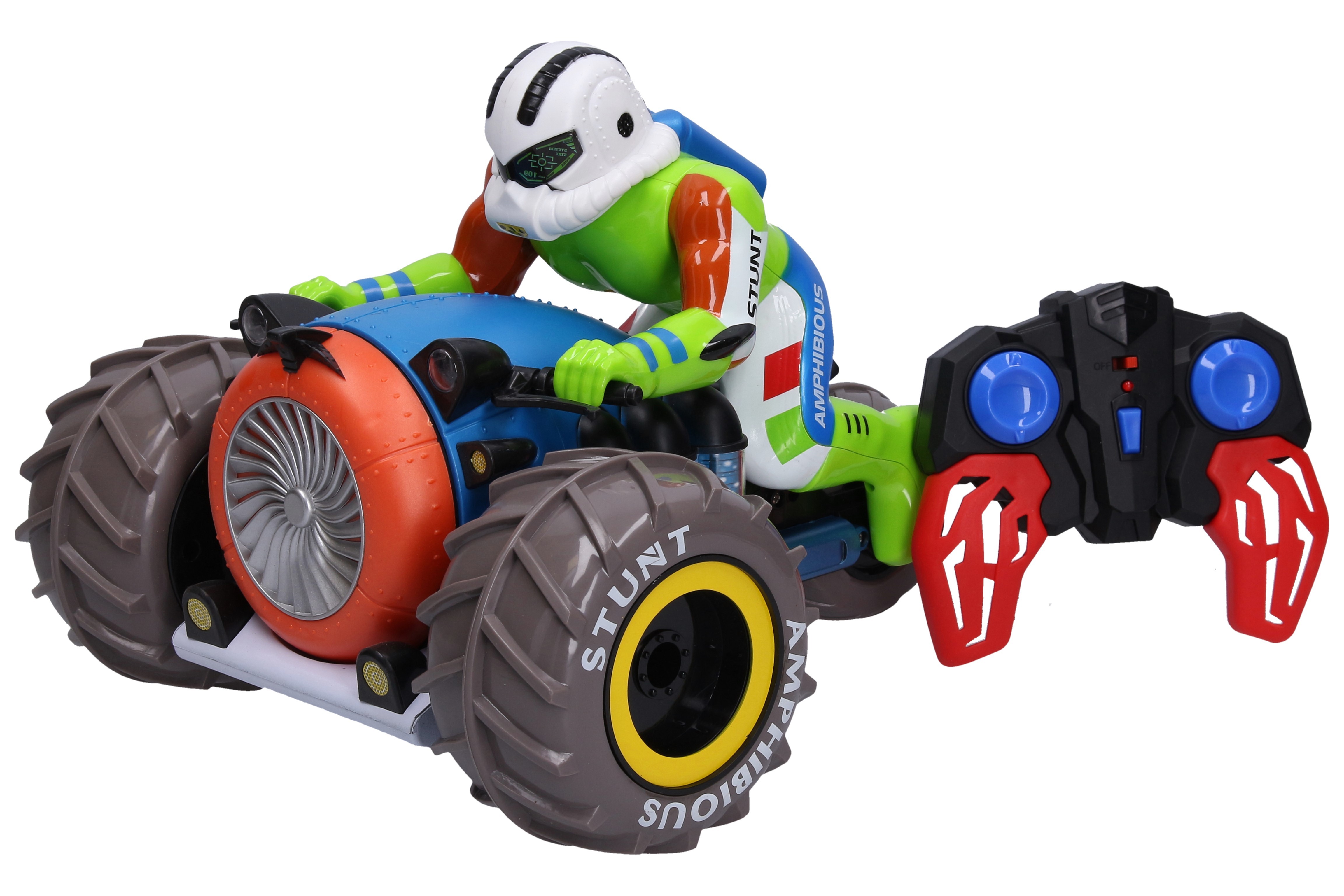 Motorka tříkolka RC na dálkové ovládání. Velikost 26 x 24 x 20 cm. Frekvence 2,4 GHz. Světelné efekty. Terénní stunt motorka, schopna jízdy ve vodě, rychlých 360° otoček, a různých obratů. Balení obsahuje USB nabíječku a šroubovák. číst celé