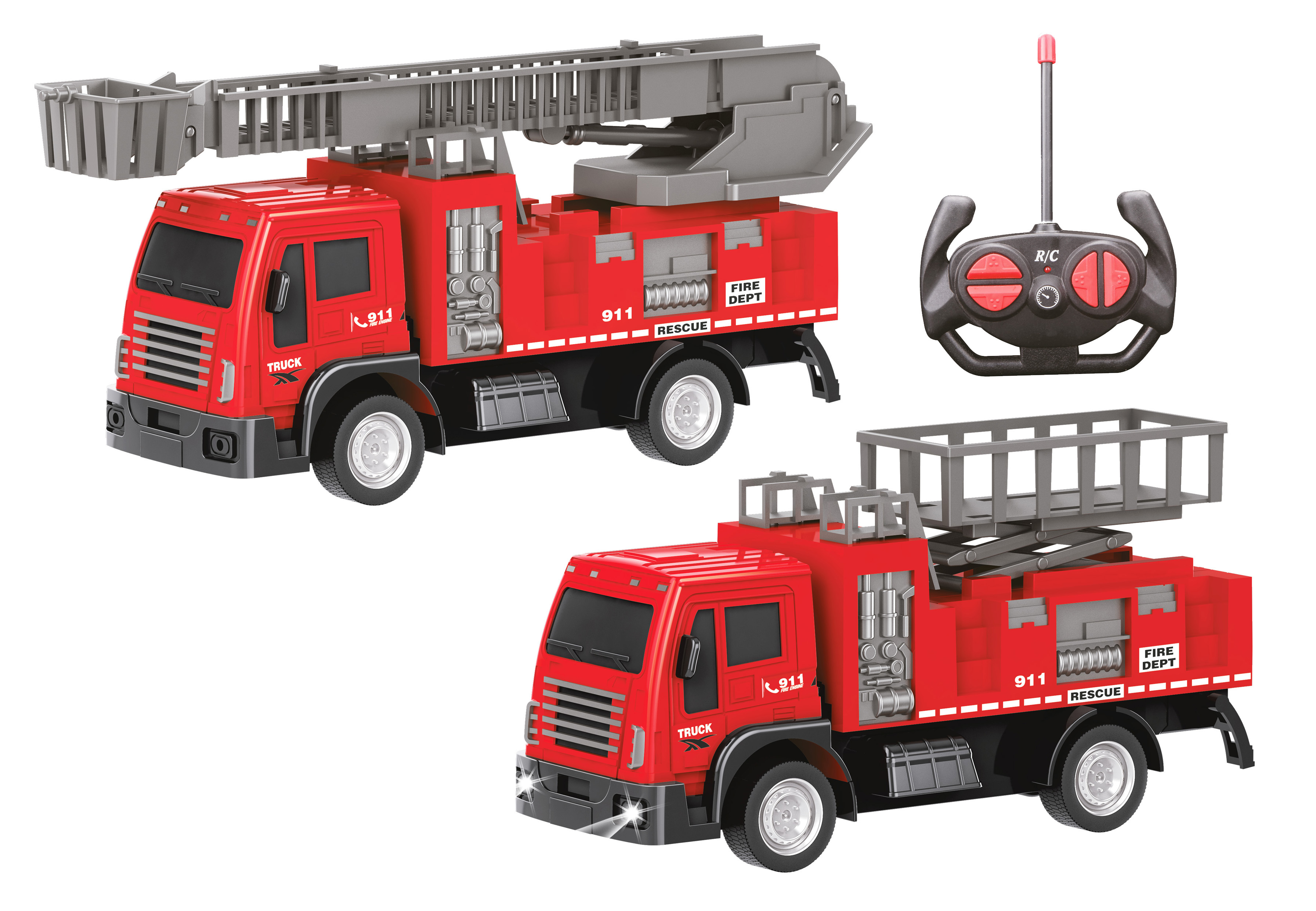 Auto hasiči RC na dálkové ovládání. Velikost 22 cm. Pohyb do 4 směrů. 2 varianty - žebřík, plošina.