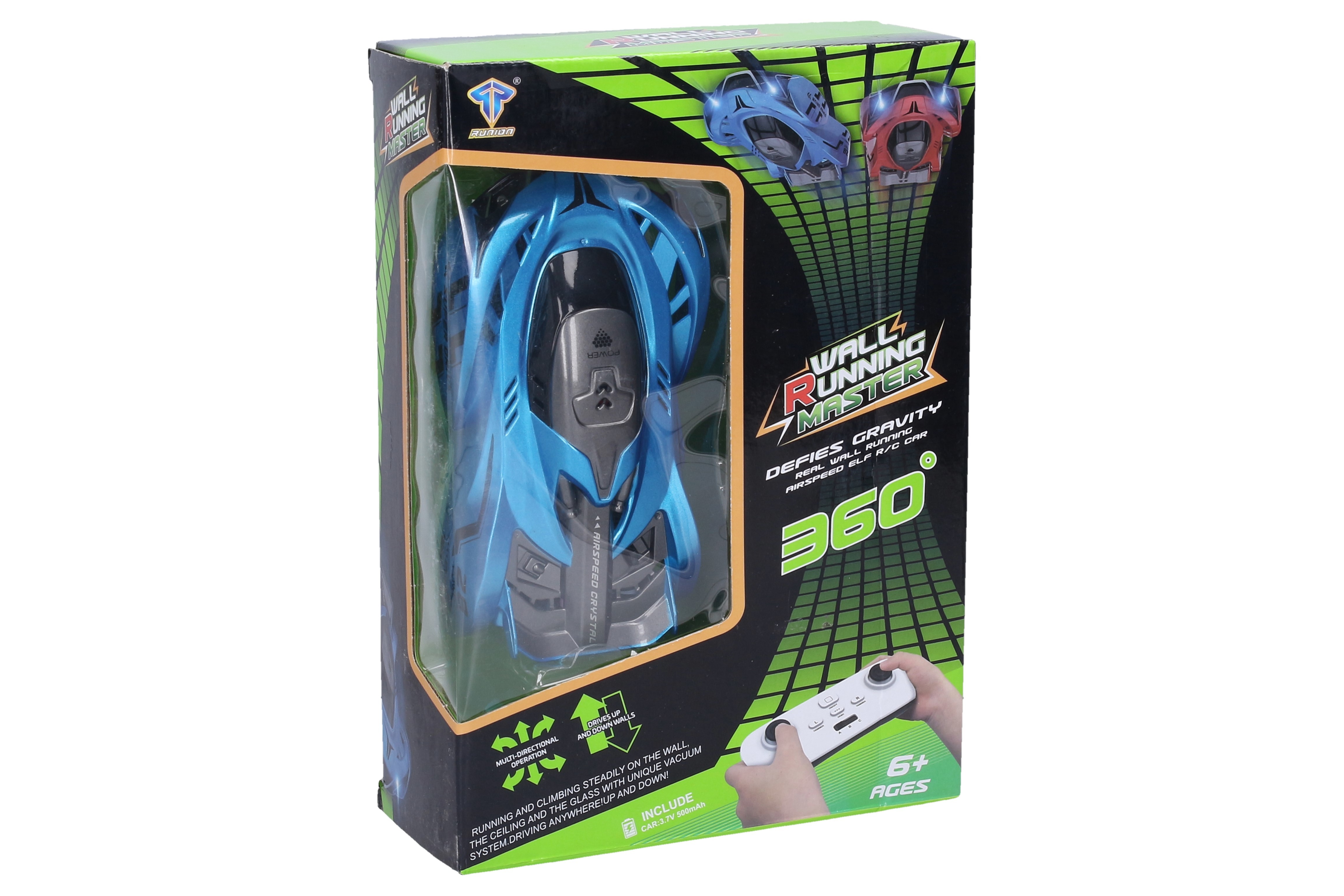 Auto antigravitační modré RC na dálkové ovládání. Velikost 15 cm. Jezdí po zemi, zdi či stropu. Infračervený port. Bateriový pack 3.7V 500mAh pro auto součástí, 2xAAA baterie do ovladače nejsou součástí. USB kabel součástí. Kanál A,B,C. Zdířka pro USB kabel na zadní straně auta. Přepínač zeď/zem/vypnuto na zadní straně auta. Tlačítko ON/OFF na ovladači. Trimmer L, Trimmer R a demo tlačítko na ovladači.