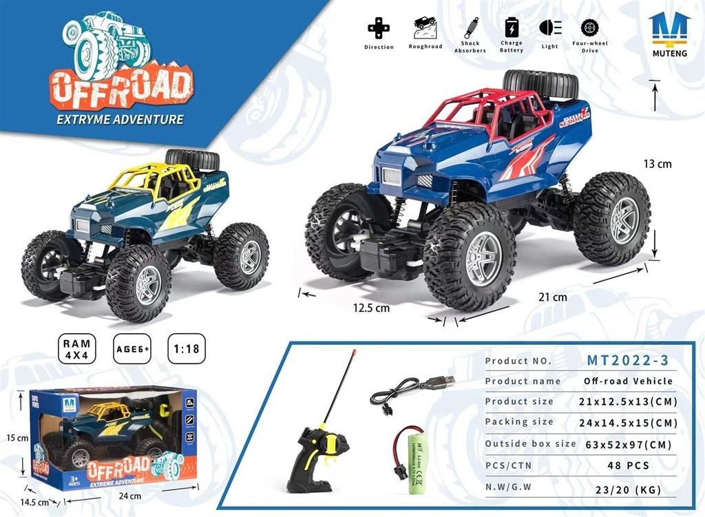 Samochód terenowy zdalnie sterowany z akumulatorem i ładowarką . Napęd 4x4 , dodatkowe koło zapasowe na pace.