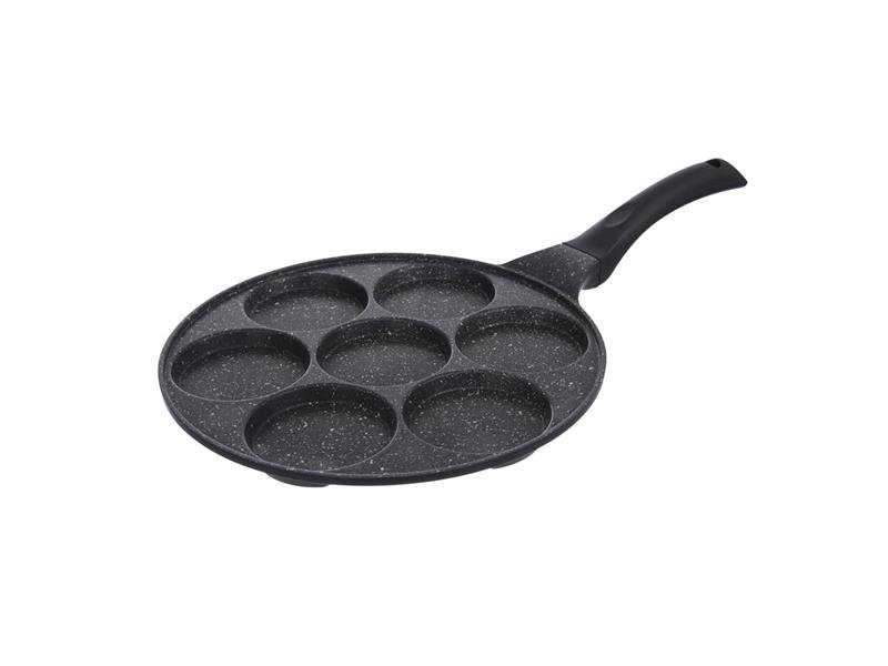 Tato kvalitní pánev je vyrobena z odlévaného hliníku a vybavena prvotřídním nepřilnavým povrchem PFLUON GRANIT, který umožňuje vaření s minimálním množstvím tuku. Díky sedmi samostatným sekcím o průměru 8 cm je ideální pro přípravu více porcí najednou - což šetří čas i energii.