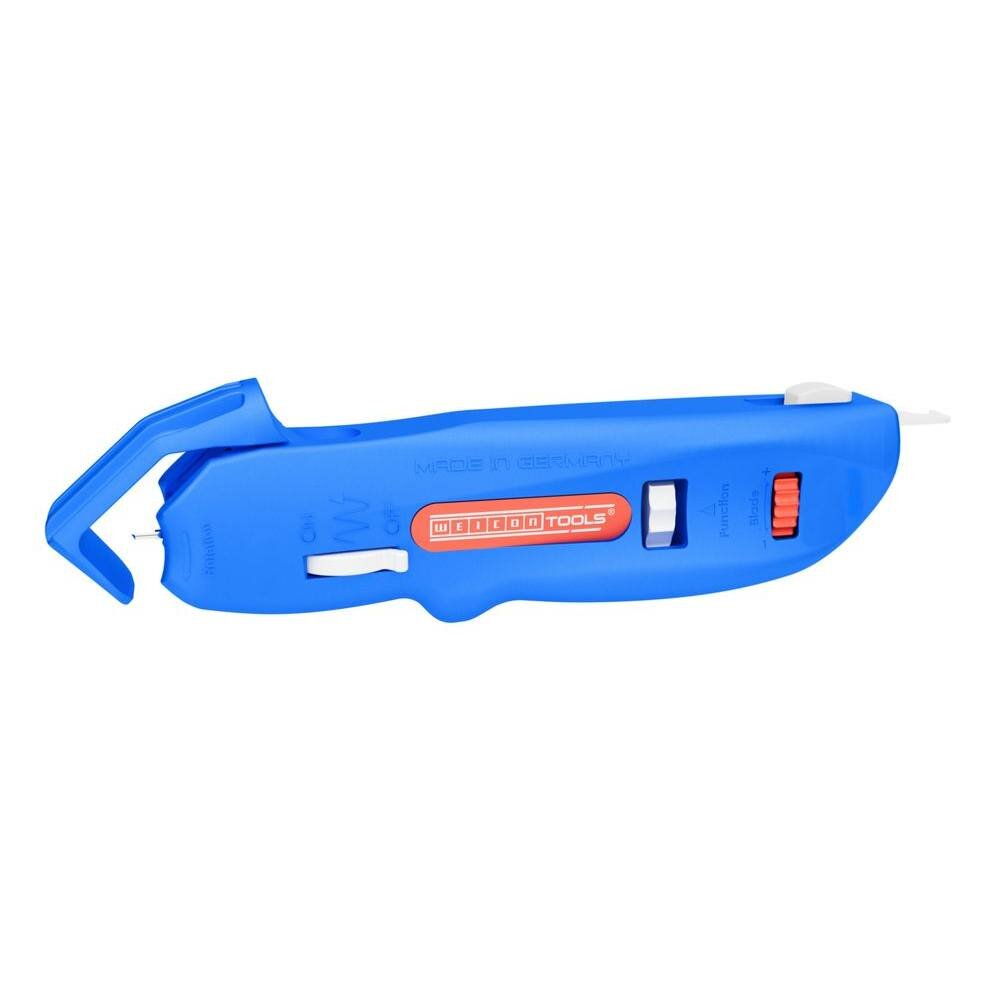Spirálový odizolovač kabelů č. S 4-28 je ideální pro přesné, rychlé a bezpečné odizolování všech běžných kulatých kabelů o průměru od 4 do 28 mm. Pro kabely, které nelze snadno odizolovat pomocí kruhových a podélných řezů, má nástroj další funkci - spirálový řez, který umožňuje snadné odstranění složité izolace. Otočný vnitřní nůž lze použít pro kruhové, podélné a spirálové řezy měkké i tvrdé izolace kabelů. Hloubku řezu lze pohodlně a přesně nastavit v krocích po 0,1 mm v rozmezí 0-3 milimetry pomocí aretovatelného nastavovacího šroubu, který zabraňuje poškození hlubších vrstev. Řezací nůž je samočinně otočný a integrovaný do pouzdra, což umožňuje rychlé automatické přepínání mezi kruhovým a podélným řezem - pouze při použití spirálového řezu je třeba nůž zablokovat. Pro provedení spirálového řezu se funkce přepíná z kruhového na spirálový řez pomocí nastavovacího kolečka. Poté se přepnutím spínače spirály vnitřní nůž zablokuje a odizolovač kabelů je připraven k provedení spirálového řezu. Chcete-li přepnout zpět na kruhový řez, je třeba uvolnit zámek pomocí spirálového spínače. Čepel se pak bude opět volně pohybovat a umožní vám provádět kruhový řez jako obvykle. Po provedení spirálového řezu je vhodné provést malý řez na konci izolace. Snadněji ji pak odlepíte. K tomuto účelu je nástroj vybaven výsuvným hákovým nožem. Samonavíjecí bezpečnostní nůž se ovládá pomocí posuvníku a v případě nesprávného použití se automaticky zasune, aby se zabránilo poranění při řezání. Díky tomu je používání čepele mnohem bezpečnější ve srovnání s pevnými čepelemi, jako jsou například čepele u řezacích nožů.