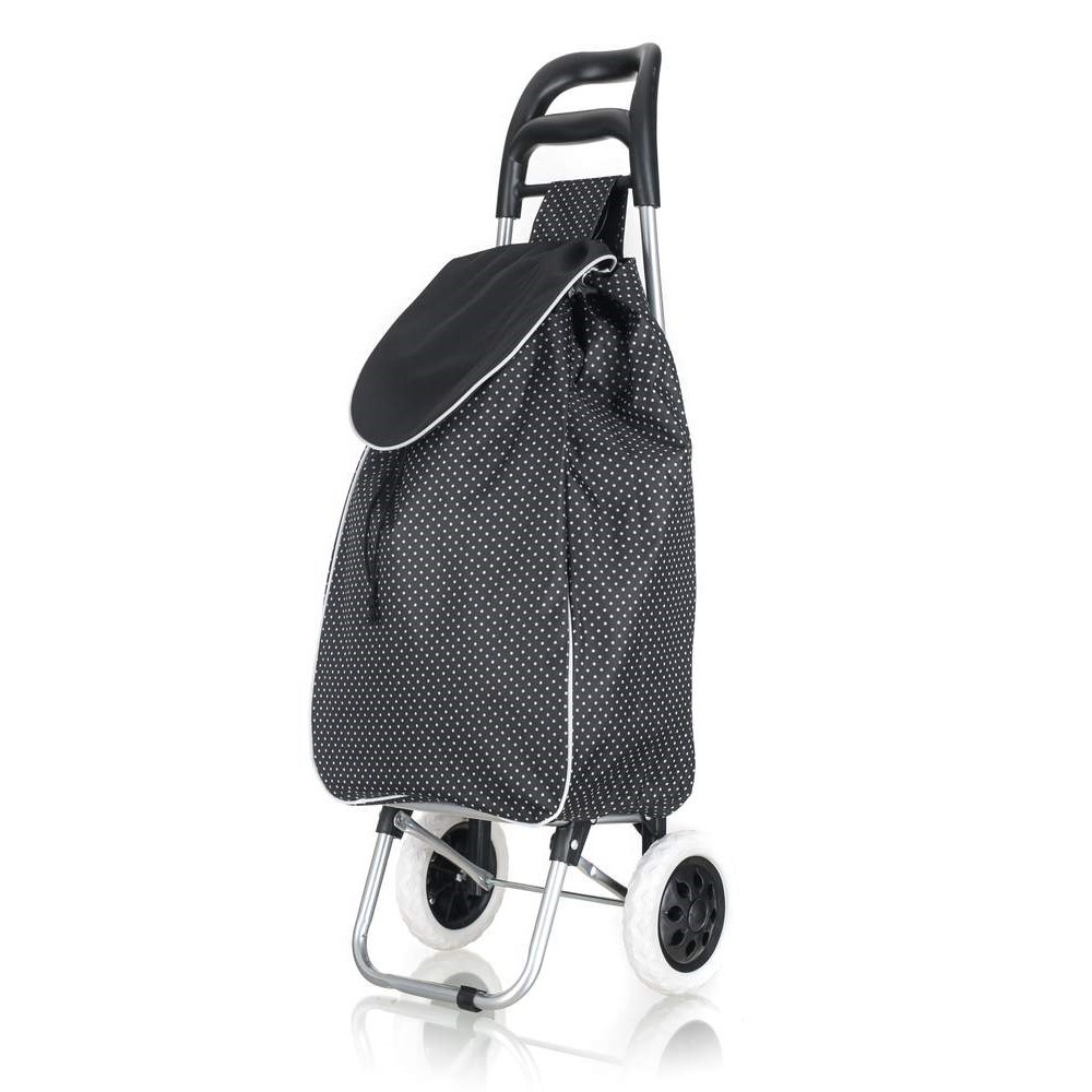 Nákupní taška na kolečkách je pomocníkem při těžších nákupech zejména pro starší občany a ženy. Objem tašky je 30 l a maximální nosnost 30 kg. Textilní taška je snadno odnímatelná z kovové konstrukce a je snadno omyvatelná. Taška na kolečkách má ergonomickou rukojeť a konstrukce tašky je zpevněná kovovou odkládací plochou, která stabilizuje celý výrobek. Plastová kolečka umožňují jednoduchý pohyb po jakémkoli povrchu.