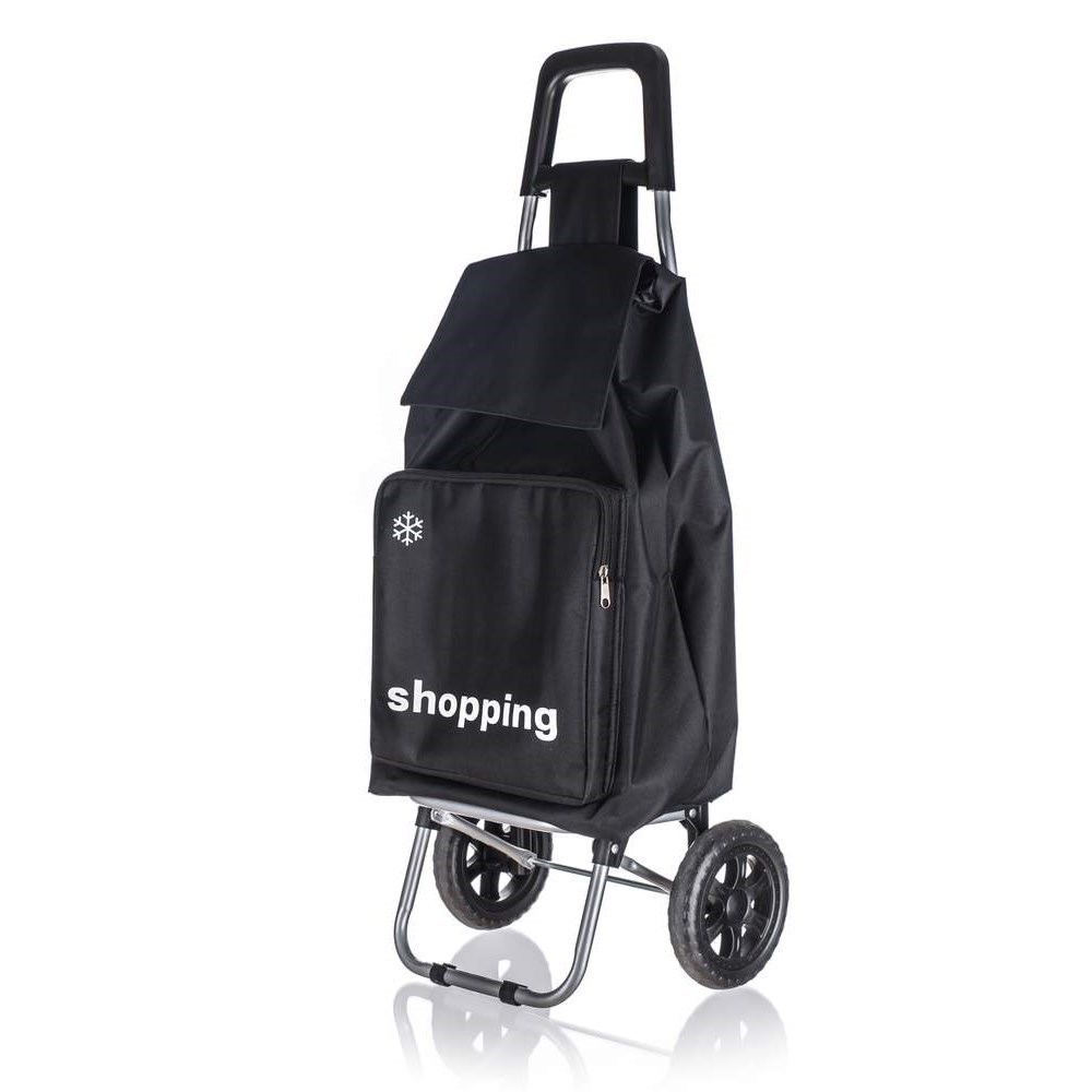 Nákupní taška na kolečkách je pomocníkem při těžších nákupech zejména pro starší občany a ženy. Objem tašky je 30 l a maximální nosnost 30 kg. Textilní taška je snadno odnímatelná z kovové konstrukce a snadná na údržbu. Taška na kolečkách má ergonomickou rukojeť a konstrukce tašky je zpevněná kovovou odkládací plochou, která stabilizuje celý výrobek. Plastová kolečka umožňují jednoduchý pohyb po jakémkoli povrchu. Součástí tašky je tepelně izolovaná kapsa pro delší uchování mražených nebo nebo teplých potravit.