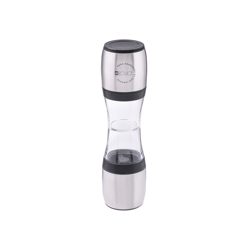Designová řada produktů El Bohío od Pepe Rodrígueze přináší vysoce výkonné profesionální kuchyňské roboty a náčiní do vaší domácnosti. Sada mlýnků na sůl a pepř El Bohío je vyrobena z vysoce kvalitní a odolné nerezové oceli s vysoce stlačeným keramickým jádrem pro mletí všech druhů zrnek pepře, soli nebo jiného koření, které vašim receptům dodá jiný nádech. Elegantní a kompaktní design v matné barvě s robustním tělem z nerezové oceli a průhledným okénkem pro kontrolu množství a druhu semínek uvnitř. Včetně víka, která udrží jídlo čerstvé a pro stabilní prezentaci na každém stole. Snadné plnění a čištění, pro prodloužení životnosti výrobku se doporučuje ruční mytí.