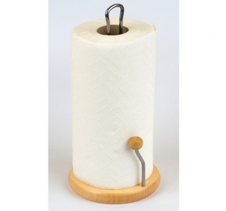 Stojan na kuchyňské utěrky PREZIDENT obsahuje dřevěnou základnu s nerezovým držákem papírových utěrek a papírové utěrky, boční držák zajišťuje aby utěrka byla stále namotaná a snadno se odtrhávala,