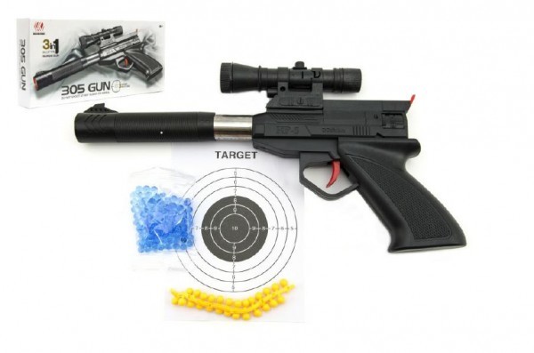 Pistole plast 30cm na měkké a vodní kuličky o průměru 6mm v krabici