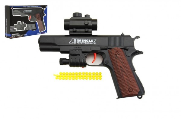 Pistole na měkké kuličky plast 20cm v krabičce 24x15x4cm - skladem, lehce poškozený kus