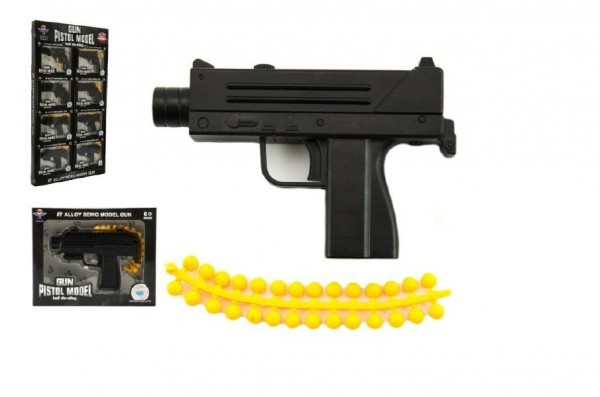 Pistole kov/plast 11cm na kuličky mix druhů v krabičce 15x12cm 8ks v boxu