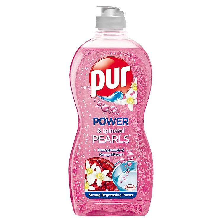 Pur Secrets of Mineral Pearls Pomegranate & Orange mycí prostředek s granátovým jablkem a vůní pomerančového květu, který odstraňuje spálené a mastné nečistoty díky své vynikající odmašťovací schopnosti, nyní s estetickými perlami přírodního původu. Při mytí nádobí zažijete brilantně čisté nádobí a ovocnou vůni.