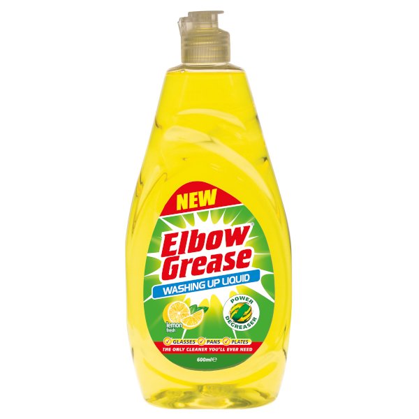 Elbow Grease prostředek na mytí nádobí - Lemon Fresh - 600mlProstředek na nádobí Elbow Grease je výkonně odstraňuje mastnotu a špínu během okamžiku. Výkonné složení tvrdě pracuje na rychlém rozpuštění a odstranění odolných usazenin jídla z hrnců, talířů a pánví. Díky svěží citrónové vůni a snadno použitelné lahvičce udělá Elbow Grease mytí ve vaší domácnosti potěšením.Nevhodné pro použití na oděvy nebo látky.