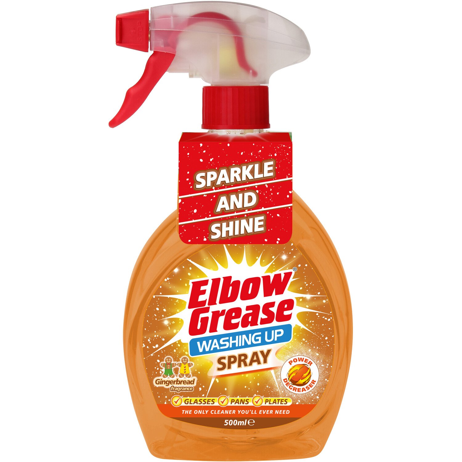 Elbow Grease Washing Up Sprej na mytí nádobí - Gingerbread/Perníček - 500mlElbow Grease Washing Up je univerzální čistící přípravek s účinnou silou proti nejrůzějším nečistotám na nádobí s perníčkovou vůní. Přípravek je vhodný na mytí všeho nádobí. Jednoduše aplikujte rozprašovačem na požadované kuchyňské nádobí, použijte houbičku a opláchněte. Přípravek je možné použít také na mytí kuchyňských prostor a pracovních ploch.POUŽITÍ: nastříkat, promnout nebo setřít houbičkou a opláchnout.