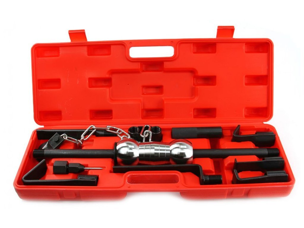 Karosářská, klempířská sada s reverzním kladivem slouží k snadnému vytahování plechů a promáčklin na nepřístupných místech. Sada obsahuje různé typy nástavců pro vytahování a odstraňování promáčklin. Perfektní sada pro opravu karoserie, užitečná v každé dílně.