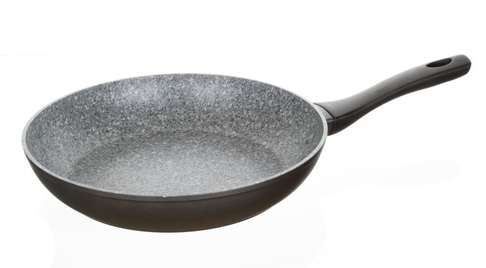 Kovaná hliníková pánev SMART STONE Grey 28x5,3cm s nepřílnavým povrchem ve struktuře šedého řičního kamene, bakelitová černá rukojeť. Pánev lze použít na všechny typy varných desek včetně indukce. Myčka: ANO číst celé