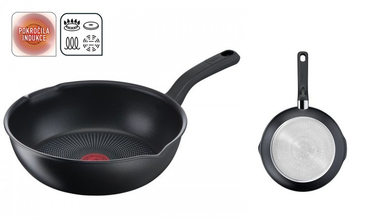 Jeho ergonomická rukojeť zajišťuje optimální úchop. K dalším funkcím patří některé z nejnovějších inovací značky Tefal, jako je dno Thermo-Fusion™ zajišťující rychlé a rovnoměrné vaření, a technologie Thermo-Signal™, která indikuje ideální teplotu pro dokonalé smažení.