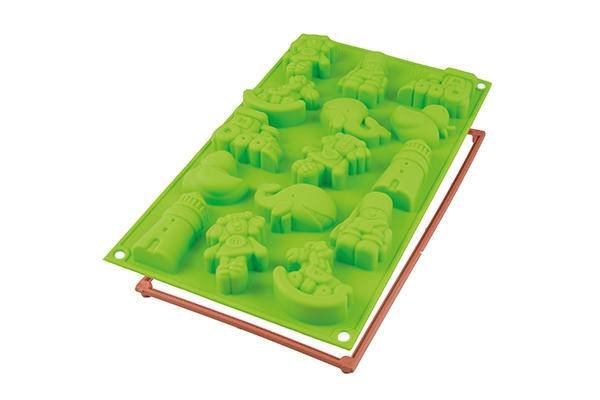 Silikonová forma na pečení 15ti dortíků ve tvaru hraček (panenka, vojáček, koník velryba, maják, kachnička, mašinka).
