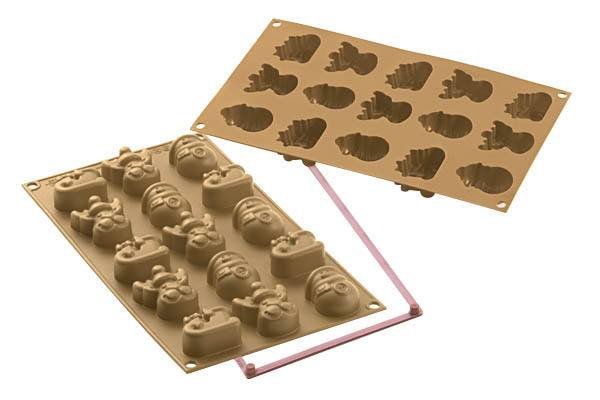 Silikonová forma na 15 dortíků s motivy soba, sněhuláka a saní o velikosti 4,8x4,4cm.