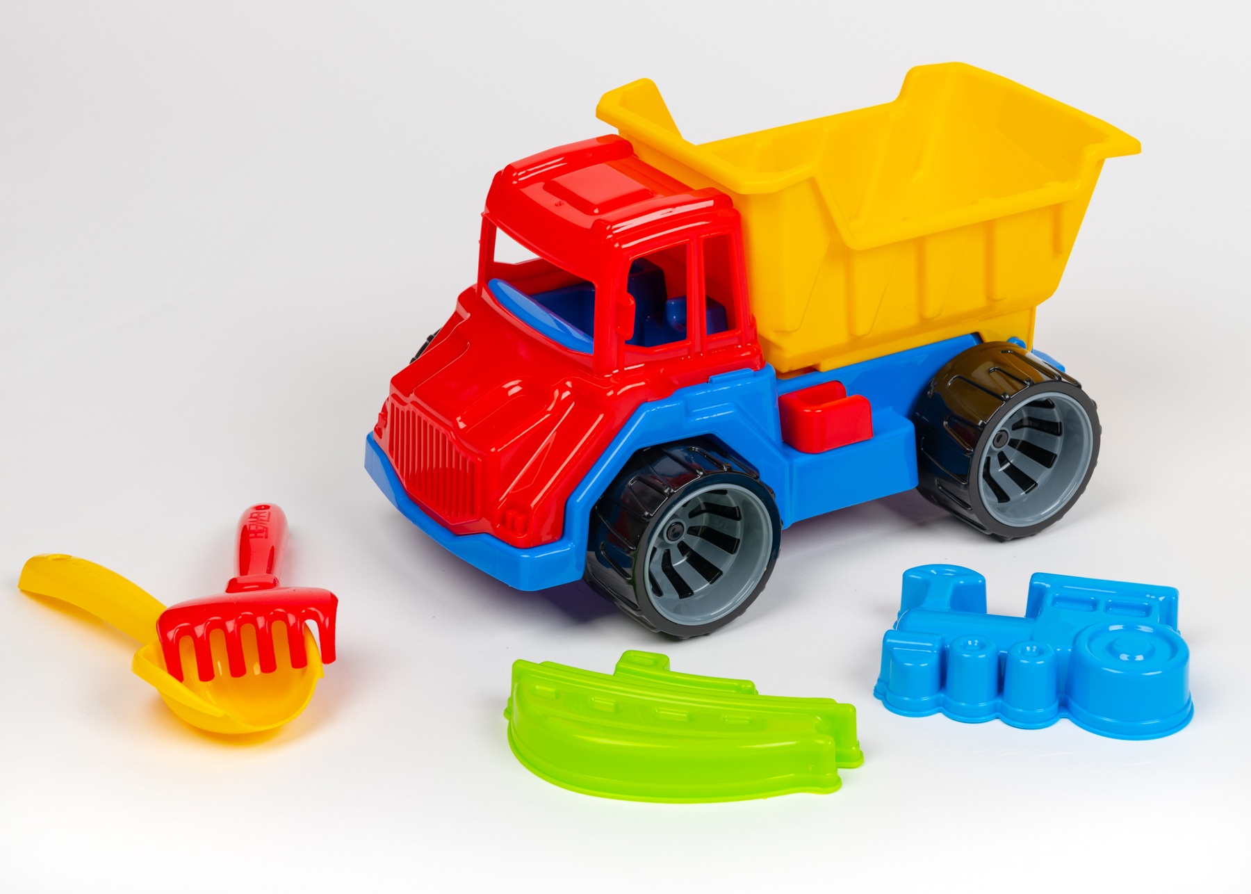 Auto sklopka funkční s lopatkou, hráběmi a formičkami číst celé
