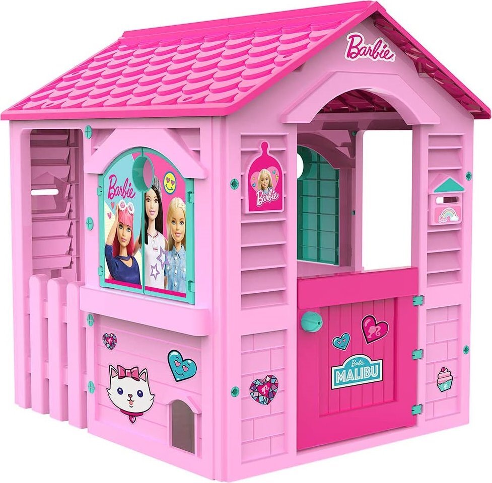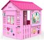 Moderní domeček na zahradu z kvalitního plastu , vyvedený v pastelových barvách. Nemá žádné ostré hrany, proto je zcela bezpečný i pro nejmenší děti. Růžový domeček má nízká dvířka, sedlovou střechu a otevíratelné okenice. Výhody domku: