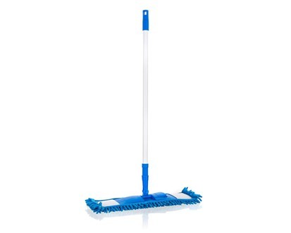 Mop plochý žinilkový s teleskopickou tyčí 68 - 120 cm, barva mopu tmavě modrá, tyč bílá s tmavě modrými plastovým prvky, materiál: žinylka 80% polyester / 20% polyamid. číst celé