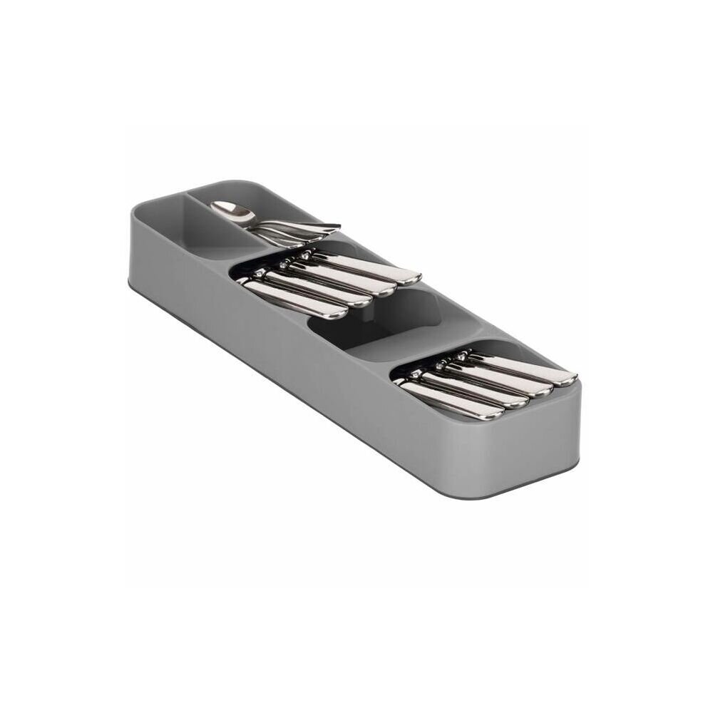 Tento kompaktní plastový příborník je navržen pro použití v zásuvce i na kuchyňské lince. Jeho protiskluzové nožičky zaručují stabilitu i při umístění na rovný povrch. Výraznou výhodou je úspora místa až o polovinu ve srovnání s klasickým příborníkem, což je možné díky ukládání příborů pod úhlem nad sebou.