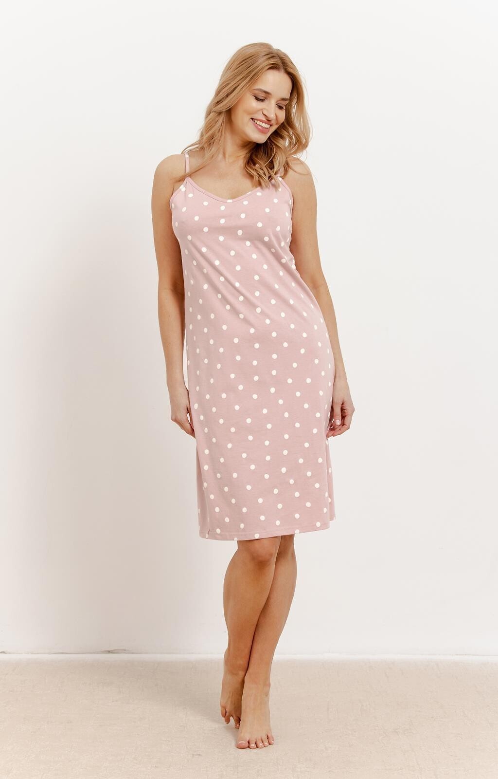 Koszula nocna- wysokiej jakości bawełna w kropki- wąskie ramiączka- bok z delikatnym rozporkiem- długość przed kolano číst celé