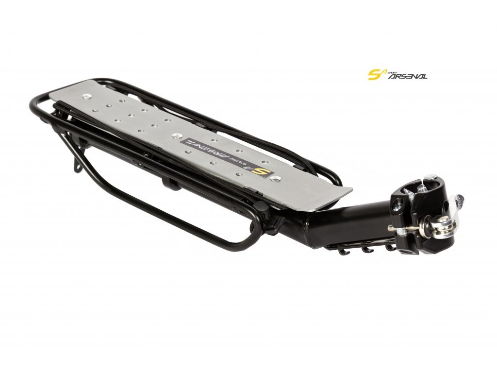 hliníkový nosič na sedlovku je určen pro převoz lehčích nákladů, ideální v případech, kdy nelze připevnit standardní nosiče (např. celoodpružené kolo, kola s atypickou zadní stavbou)