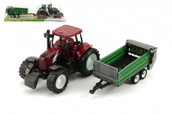 Traktor s přívěsem plast 45cm na setrvačník asst 2 barvy v krabici