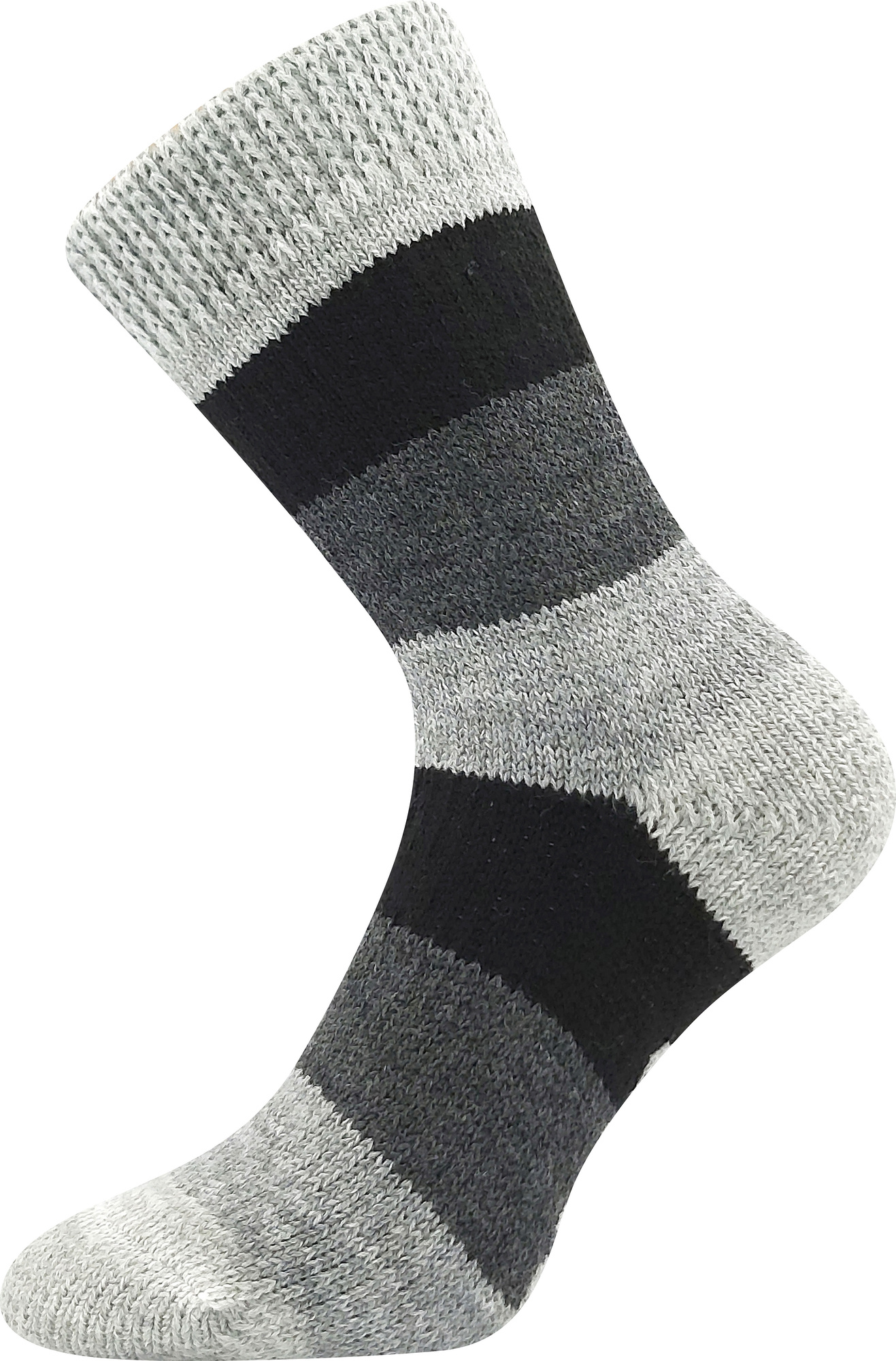 Velmi silné SPACÍ ponožky Boma® v pruhovaném designu jsou určené přímo na spaní. Silný úplet je velmi jemný a příjemný, ponožky jsou tak maximálně hřejivé, a to i díky podílu ovčí vlny. Extra jemný neškrtící lem podporuje dobré prokrvení nohou. Teplé nohy znamenají klidnější a kvalitnější spánek. Barevné pruhované ponožky můžou nosit dámy i pánové také na doma, klidně při lenošení na pohovce nebo při sledování televize.