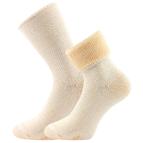 Velmi silné ponožky Boma® POLARIS jsou teplé ponožky s maximální hřejivostí. Silný úplet je velmi jemný a příjemný, extra jemný neškrtící lem nestahuje a nebrání tak dobrému prokrvení nohou. Barevné ponožky můžou nosit dámy i pánové na doma, klidně při lenošení na pohovce nebo při sledování televize. Hodí se také na spaní, teplé nohy znamenají klidnější a kvalitnější spánek.