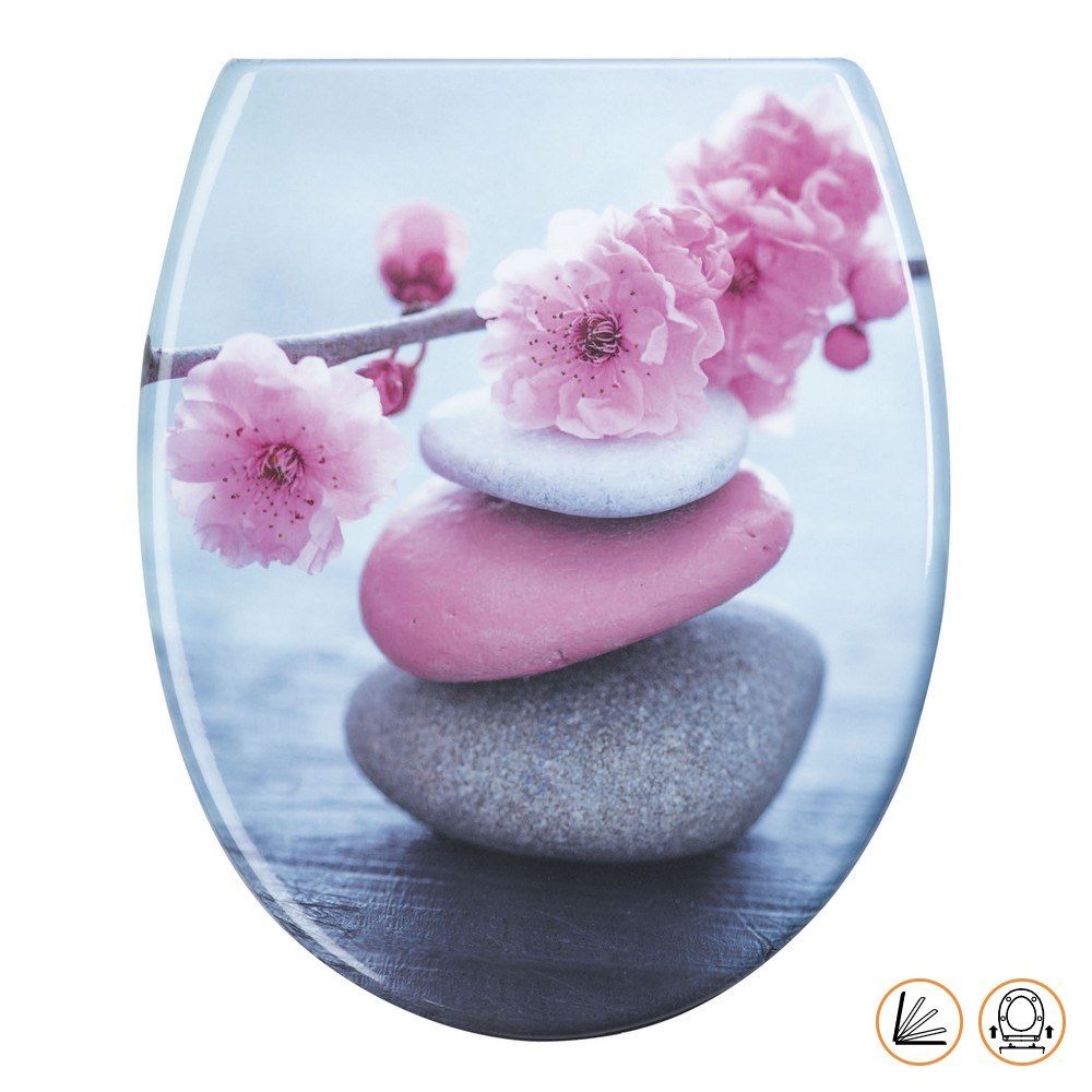 Toaletní prkénko s funkcí softclose a dekorem květin. Rozměry 37.3 x 5 x 44.5 cm, rozteč uchycení 8 až 20 cm. Materiál duroplast. Prkénko je odnímatelné od základny. EAN 5901812357441