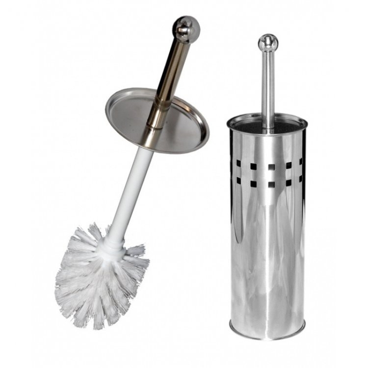 Tato WC sada obsahuje nerezovou dózu na kartáč a plastovou záchodovou štětku, která je vybavena praktickým plastovým kalichem uvnitř nádoby. Ten efektivně zachytává přebytečnou vodu a udržuje okolí WC čisté a suché. Průměr nádoby je 8 cm a výška 38 cm, což ji činí kompaktní a vhodnou i do menších prostor.