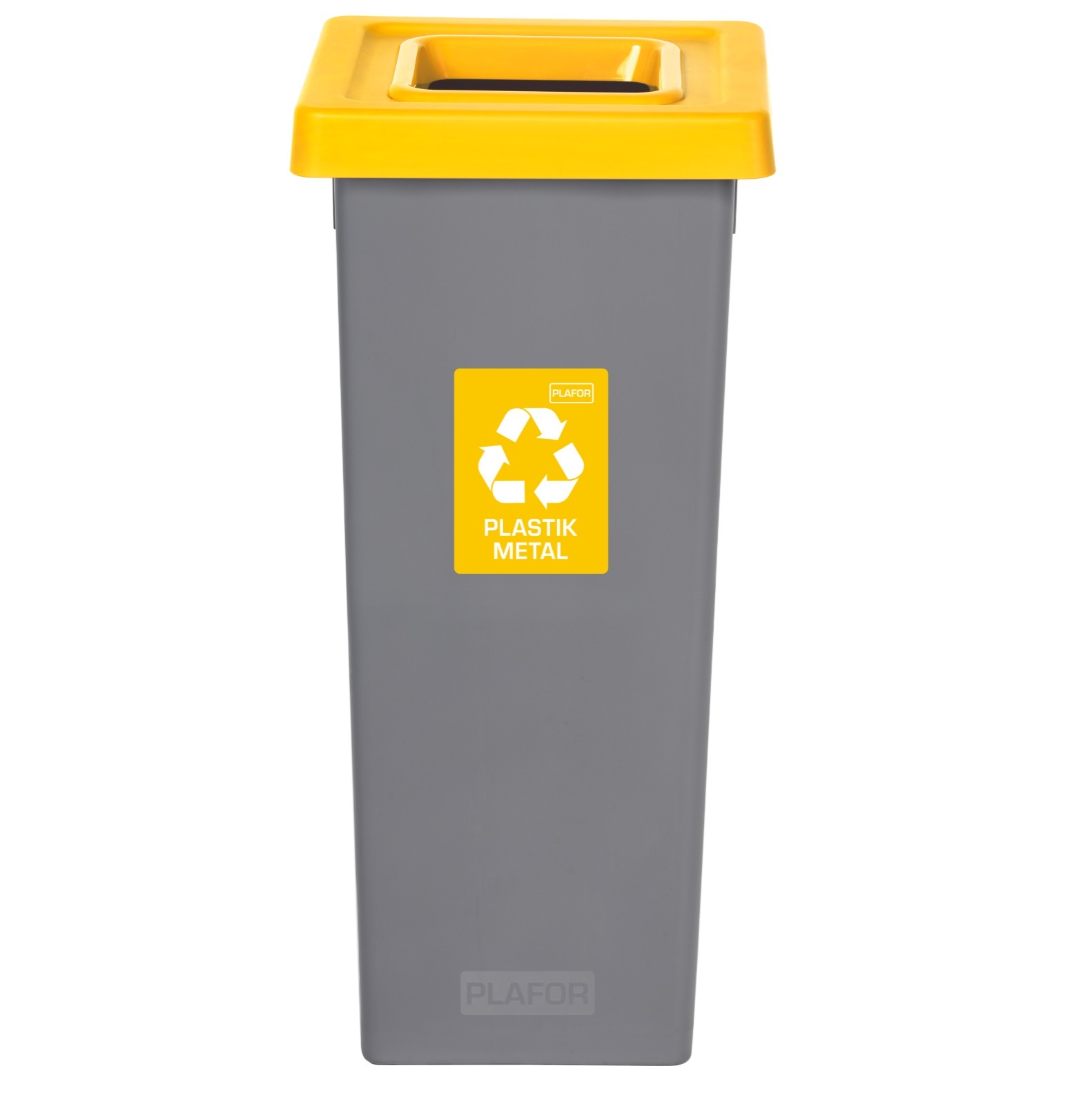 Třídění odpadu nebylo nikdy jednodušší! S odpadkovými koši Fit Bin, máte doma jednoduché koše na tříděný odpad, se kterými snadno třídíte papír, sklo, zbytkový odpad, plasty, kovy a organický odpad. Tato verze má objem 53 litrů a vypadá stylově díky šedému nebo černému základnímu boxu s barevným okrajem. Nádoby na tříděný odpad jsou k dispozici se žlutým, zeleným, modrým, červeným, šedým nebo hnědým okrajem. Tímto způsobem si můžete vybrat jinou barvu pro každý druh odpadu. Koše mají štítek a víko s uvedením druhu tříděného odpadu. Dodatečně lze dokoupit velmi praktické plastové podstavce určené pro 2 nebo 3 koše. Koše jsou vhodné do škol, nemocnic, domácností, kanceláří, kosmetických salonů a všude tam, kde chtějí třídit odpad a pomáhat tak naší planetě.