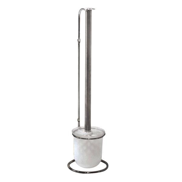 WC souprava na toaletu, štětka s kovovým držadlem v bílé plastové nádobě na kovovém stojánku. Materiál - plast, pochromovaný kov. Rozměry stojanu - 49,7 x 10,5 cm. Rozměry štětky - 47 x 7,8 cm. Barva - modrá, bílá, stříbrná
