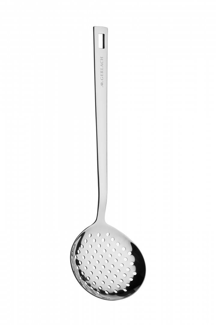Łyżka cedzakowa Gerlach SOLID (model 312P) to wszechstronne i trwałe narzędzie kuchenne, idealne do codziennego użytku. Wykonana z wysokiej jakości stali nierdzewnej, charakteryzuje się dużą odpornością na korozję oraz odkształcenia. Przetłoczenia poprzeczne dodatkowo wzmacniają jej konstrukcję, co gwarantuje solidność podczas intensywnego użytkowania.Ergonomiczny uchwyt z otworem umożliwia wygodne zawieszenie łyżki na haczyku, co ułatwia organizację w kuchni. Jest idealna do odcedzania klusek, pierogów oraz innych potraw gotowanych w wodzie czy gorącym oleju. Łyżka jest odporna na wysokie temperatury, co sprawia, że jest bezpieczna podczas gotowania i smażenia.Wykończenie w połysku sprawia, że łatwo utrzymać ją w czystości, a możliwość mycia w zmywarce dodatkowo zwiększa komfort użytkowania. Łyżka SOLID jest również doskonała na grilla, nie pochłania zapachów z produktów spożywczych i jest w pełni bezpieczna dla zdrowia.