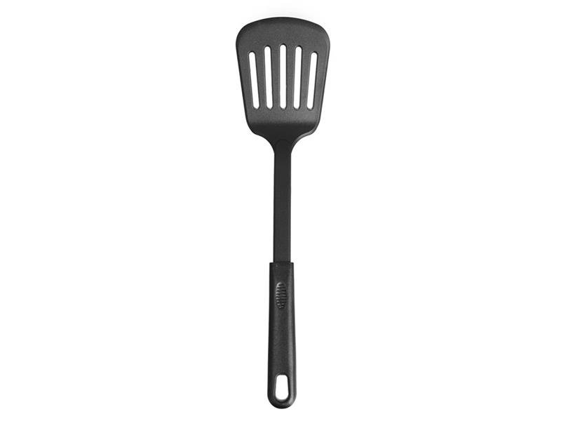 Tato obracečka je vyrobena z termoplastu PBT, který zvládne teploty až do +200 °C, proto je ideální pro práci přímo na pánvi či grilu. Díky odolnosti vůči teplu nehrozí poškození ani při kontaktu s horkým povrchem. Praktickým detailem je možnost zavěšení, takže si ji pohodlně uskladníte vždy na dosah ruky.