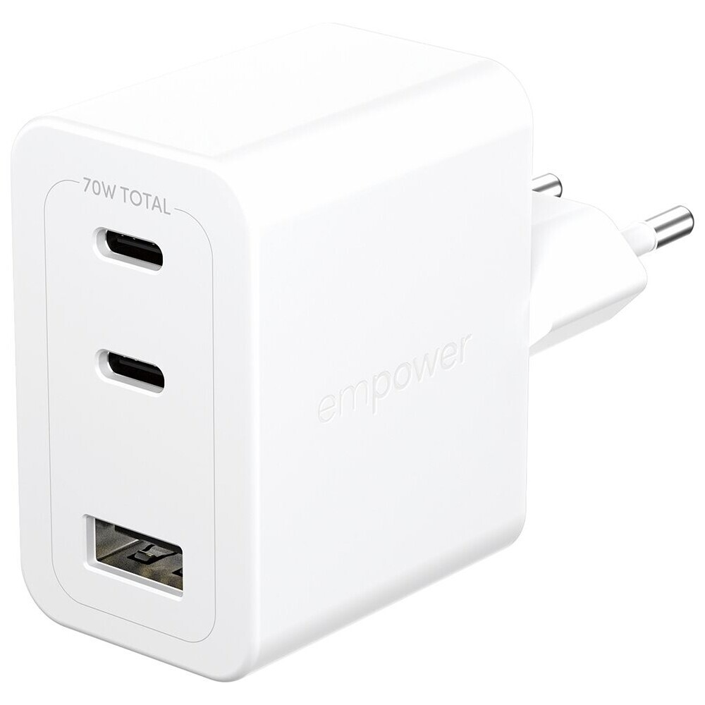 PanzerGlass® empower nabíječka Turbo GaN (70 W) 2x USB-C + 1x USB-A, bílá