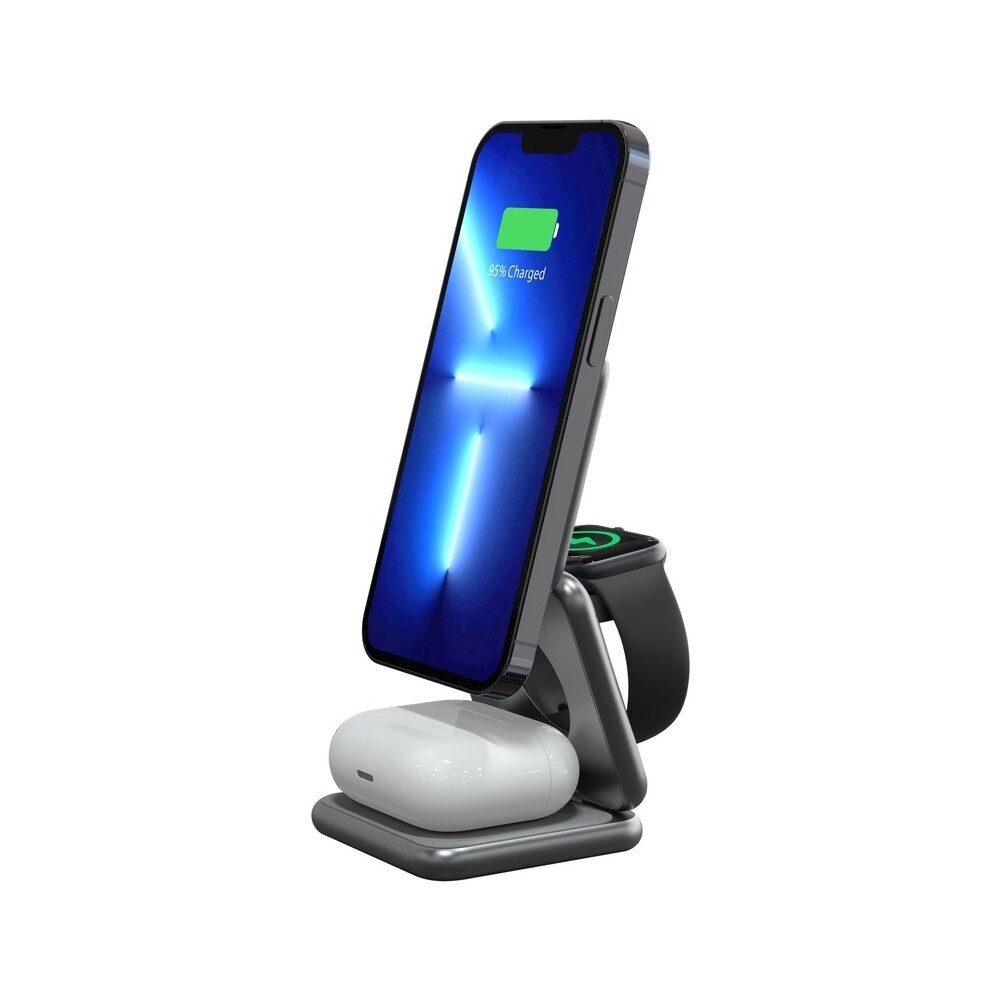 CubeNest S312 Fold 3v1 magnetická bezdrátová nabíječka šedá