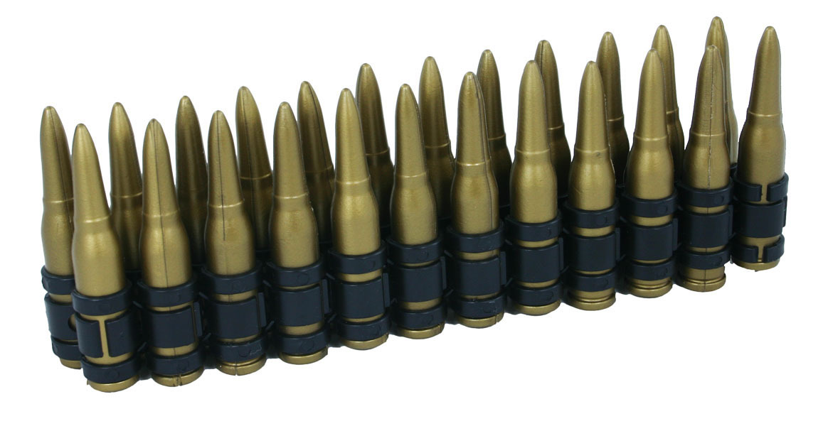 Náhradní náboje do samopalu se vždycky hodí! Balení těchto plastových nábojů v bronzové barvě obsahuje 24 ks.