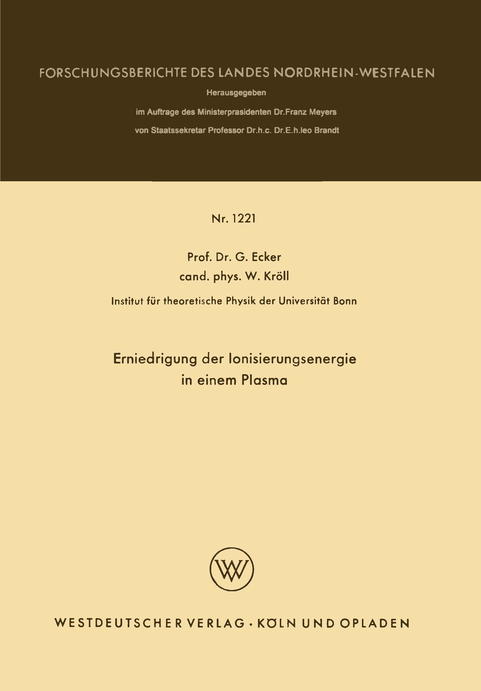 Erniedrigung der Ionisierungsenergie in einem Plasma (německy)