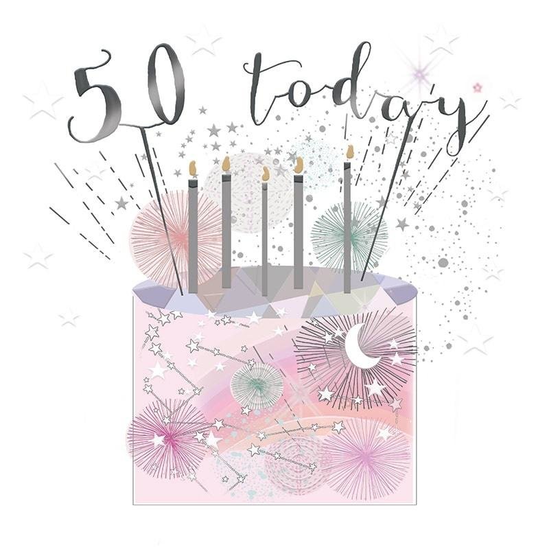 Karnet kwadrat mały z kopertą Urodziny 50 świeczki