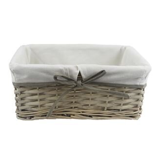 Zásuvka s látkou velká.Rozměry : 38 x 29 cm, výška 15 cm.Barva : šedá.Materiál : proutí, textil.