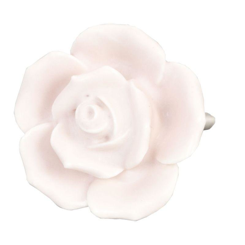 Nádherná keramická nábytková úchytka ve tvaru růžičky ve světle růžové barvě. číst celé