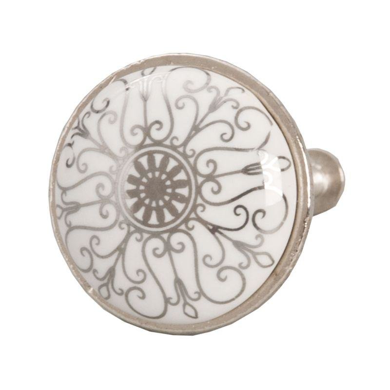 Keramická nábytková úchytka s motivem květinky v černé barvě se stříbrným středem. číst celé