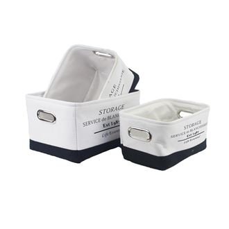 Sada textilních zásuvek. Sada obsahuje 3 zásuvky. Malá zásuvka má rozměry 30 x 20 cm, výšku 16 cm. Střední zásuvka má rozměry 33 x 23 cm, výšku 18 cm. Velká zásuvka má rozměry 36 x 26 cm, výšku 20 cm. Barva : kombinace bílá s černou. Materiál : textil.