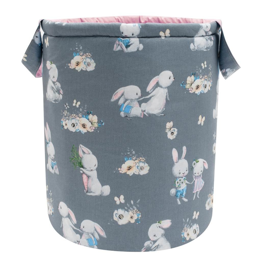 Bavlněný koš New Baby králíček je praktickým doplňkem, který využijete pro rychlý úklid pokojíčku i jako přepravní prostor na hračky. Lze jej také použít jako koš na prádlo nebo oblečení. Je oboustranný a jeho potah je vyroben ze 100% bavlny. Byl vyztužen vrstvou polyesterovým vláknem, díky níž si udržuje svůj tvar, a po složení se vejde do zásuvky. Má rukojeti pro snadné přenášení.