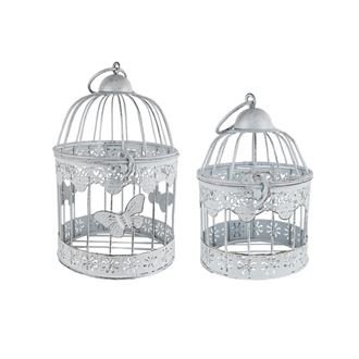 Sada dekoračních klecí.Sada obsahuje 2 klece.Malá klec má rozměry : 12 x 12 cm, výška 18 cm.Velká klec má rozměry : 15 x 15 cm, výška 23 cm.Barva : bílá.Materiál : kov.
